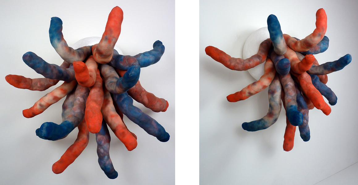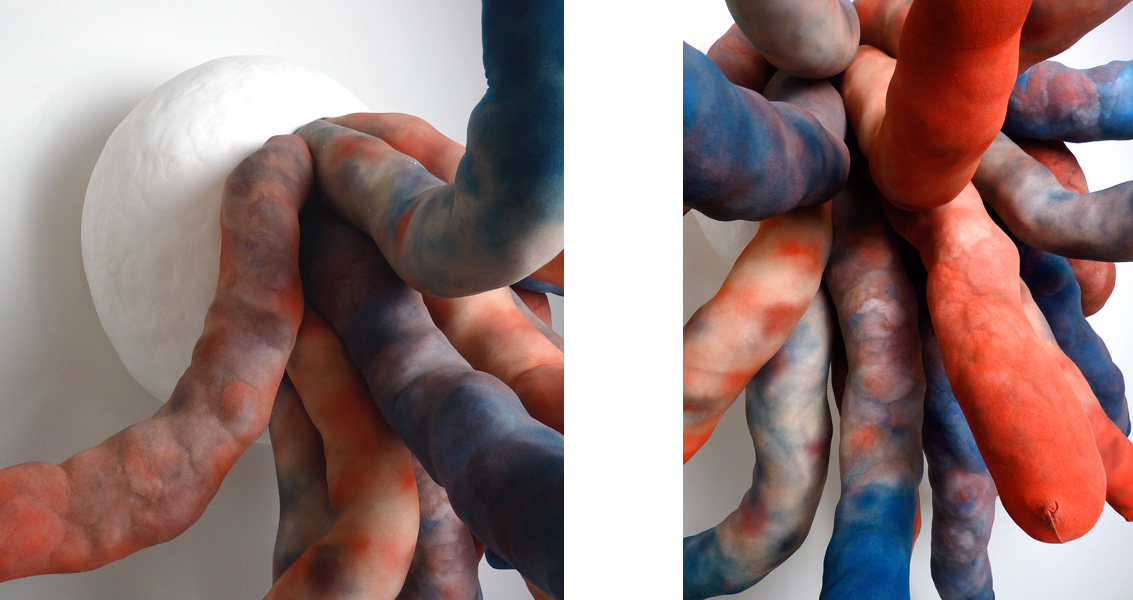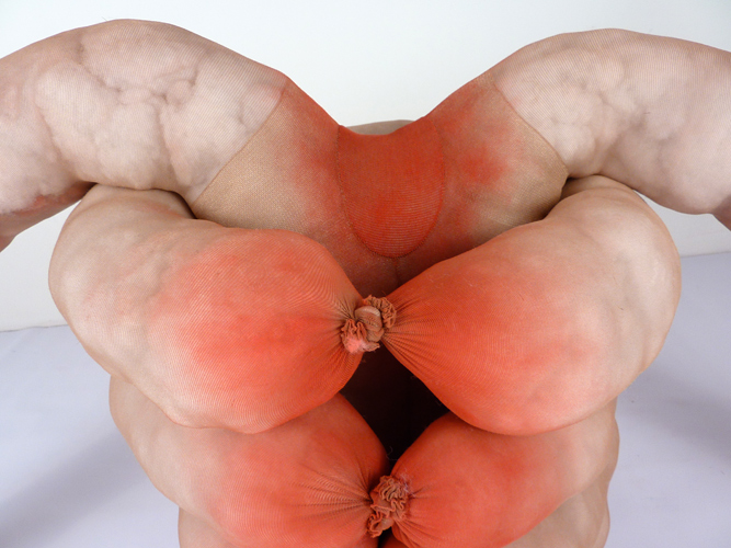 After Birth (details), acrylic, chicken wire, dry pigment, Magic-Sculpt, pantyhose, plaster gauze, and polyfil, 40" x 40" x 34", 2013