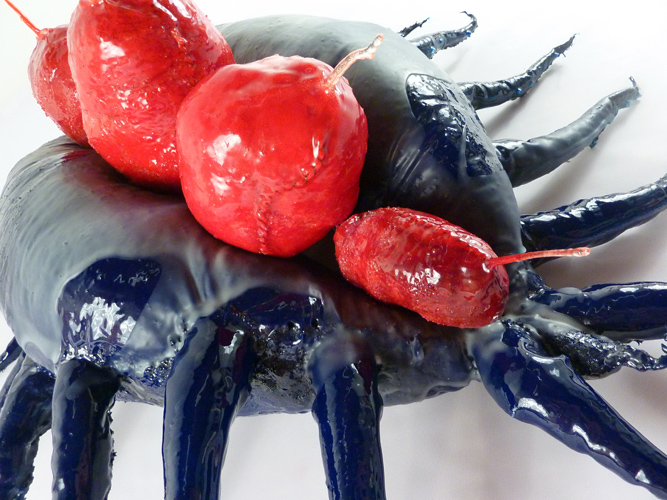 Blue Balls (detail), acrylic, EnviroTex, pantyhose, polyfil, rocks, 22.5"L x 8.5"W x 4.5"D, 2013