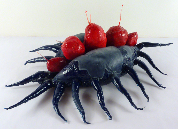 Blue Balls, acrylic, EnviroTex, pantyhose, polyfil, rocks, 22.5"L x 8.5"W x 4.5"D, 2013