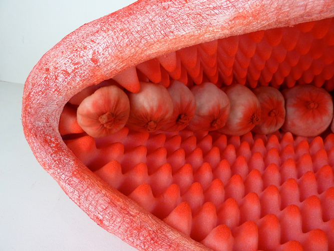 Clam (detail), chicken wire, foam, dry pigment, gauze, pantyhose, plaster gauze, 15" x 36" x 20", 2013