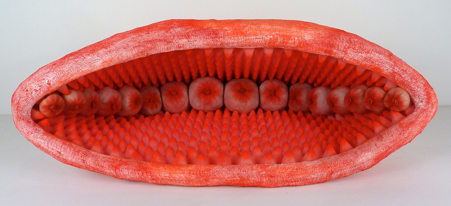 Clam, chicken wire, foam, dry pigment, gauze, pantyhose, plaster gauze, 15" x 36" x 20", 2013