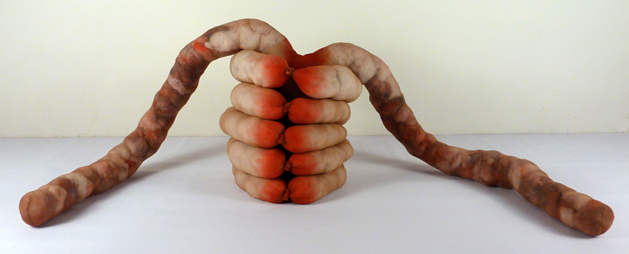 Phantom Limbs, acrylic matte medium, aluminum, dry pigment, pantyhose, and polyfil, 7.5" x 15" x 16", 2012