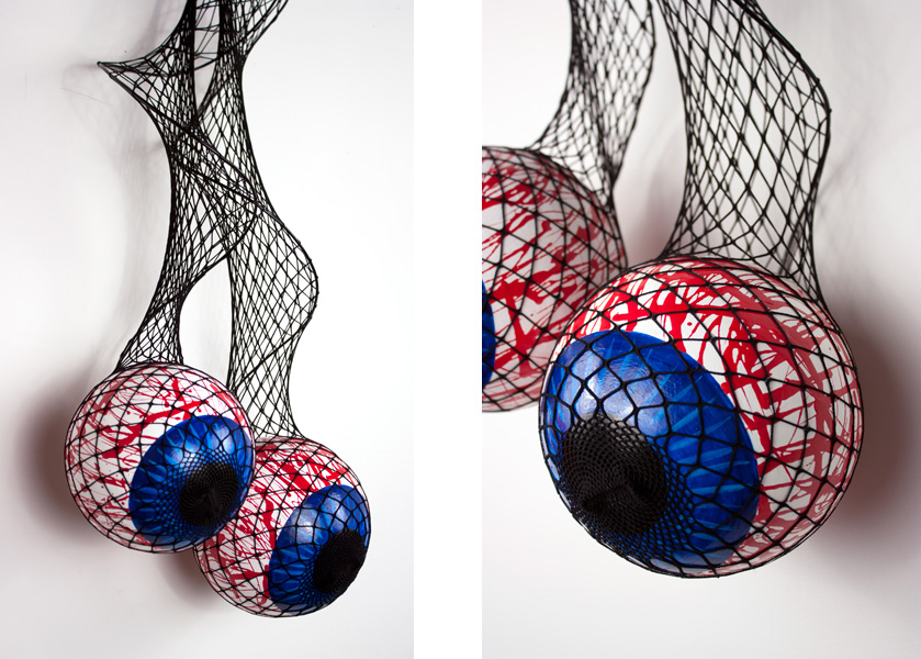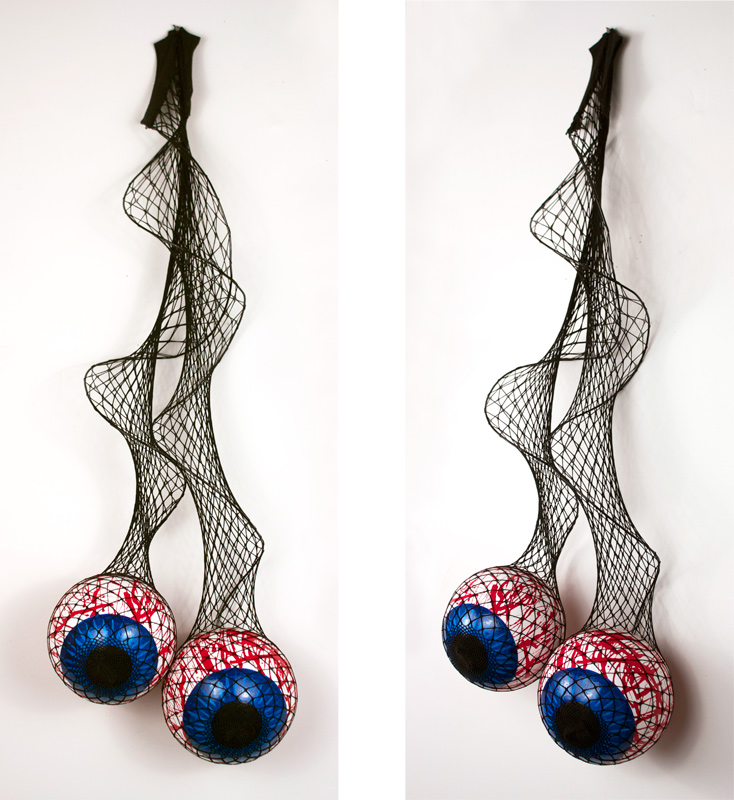 Eyeballz, acrylic, Aqua-Resin, fishnet stockings, styrofoam, wire,11"W x 35"H x 7"D, 2015