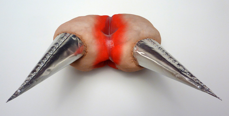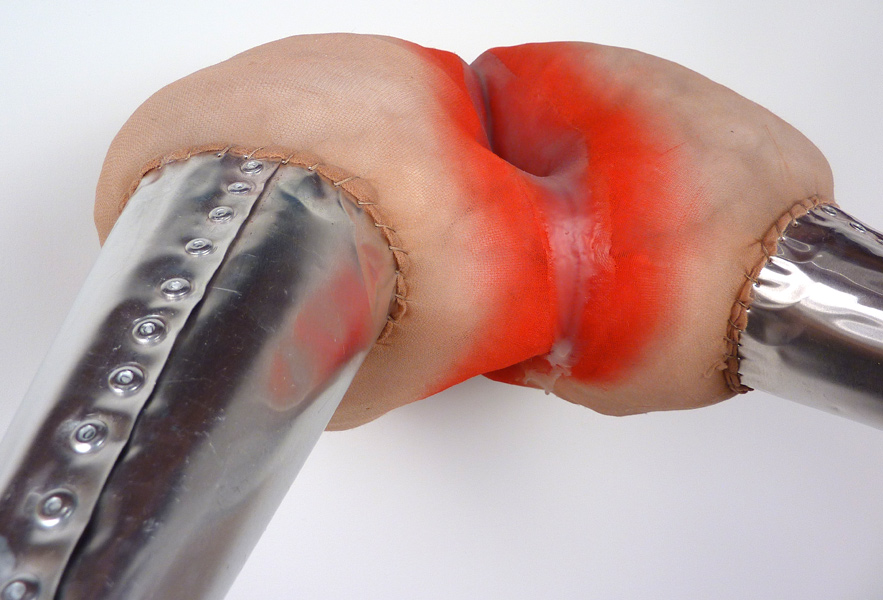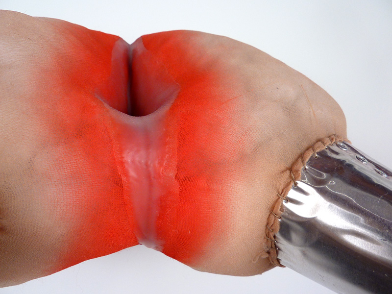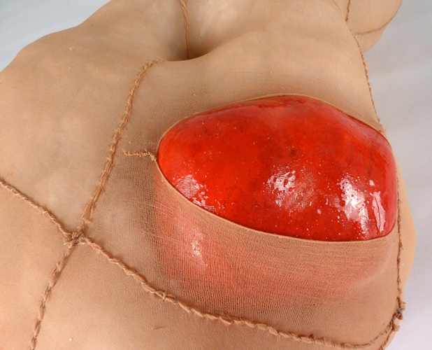 Phantom Limbs (detail), acrylic matte medium, aluminum, dry pigment, pantyhose, and polyfil, 7.5" x 15" x 16", 2012