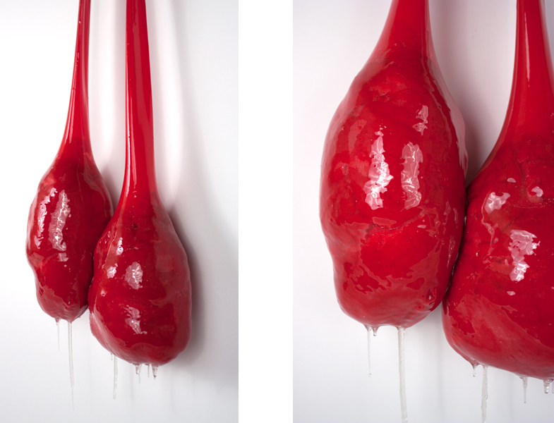 Grow a Pair (detail), acrylic, EnviroTex, pantyhose,