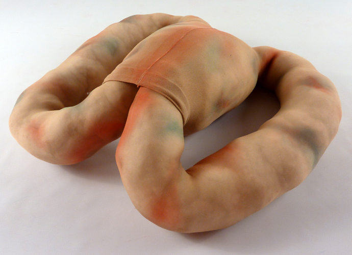 Crotch Shot, dry pigment, pantyhose, polyfil, wire, 51" L x 31" W x 20" H, 2013